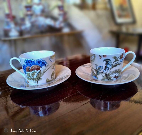 Paire de tasses en porcelaine avec soucoupes
