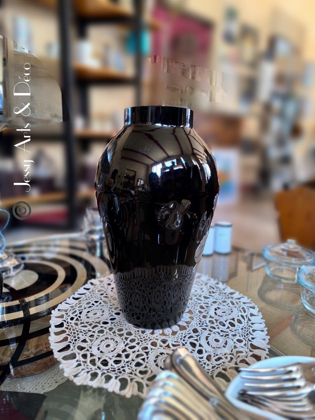 Grand vase noir avec déco fait mains